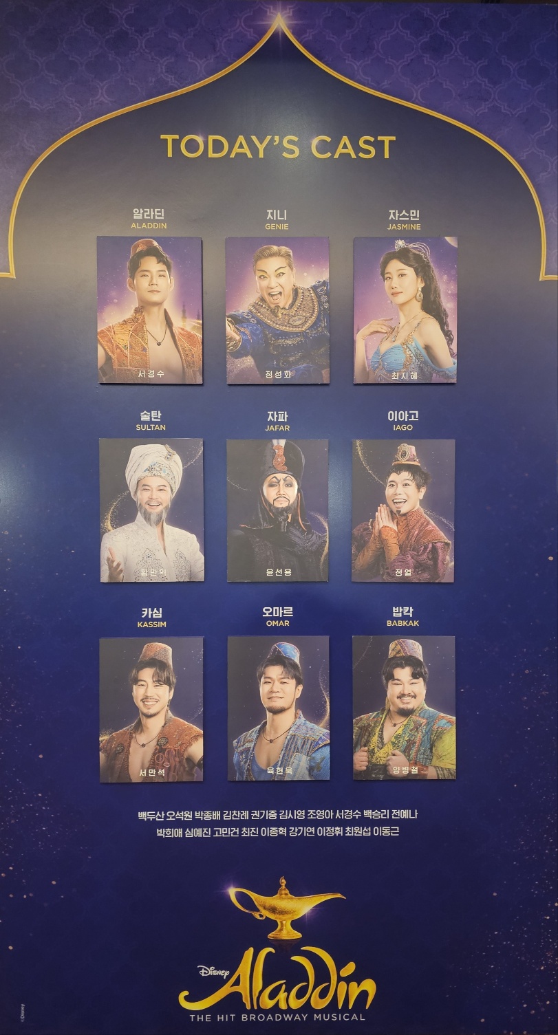 제가 관람한 작품은 디즈니 원작을 바탕으로 한 뮤지컬 <알라딘>.